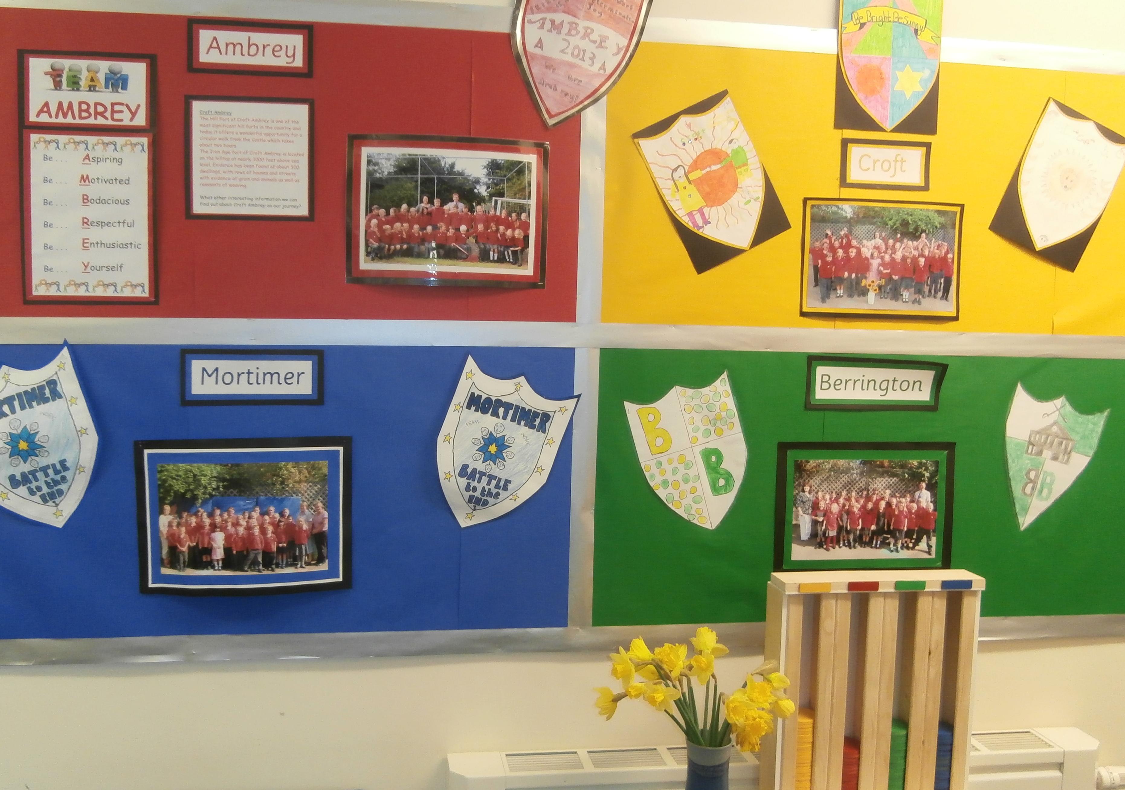Every child and pupil in our school belongs to a House.  The Houses are named after place of local historical interest:  Ambrey, Berrrington, Croft and Mortimer.